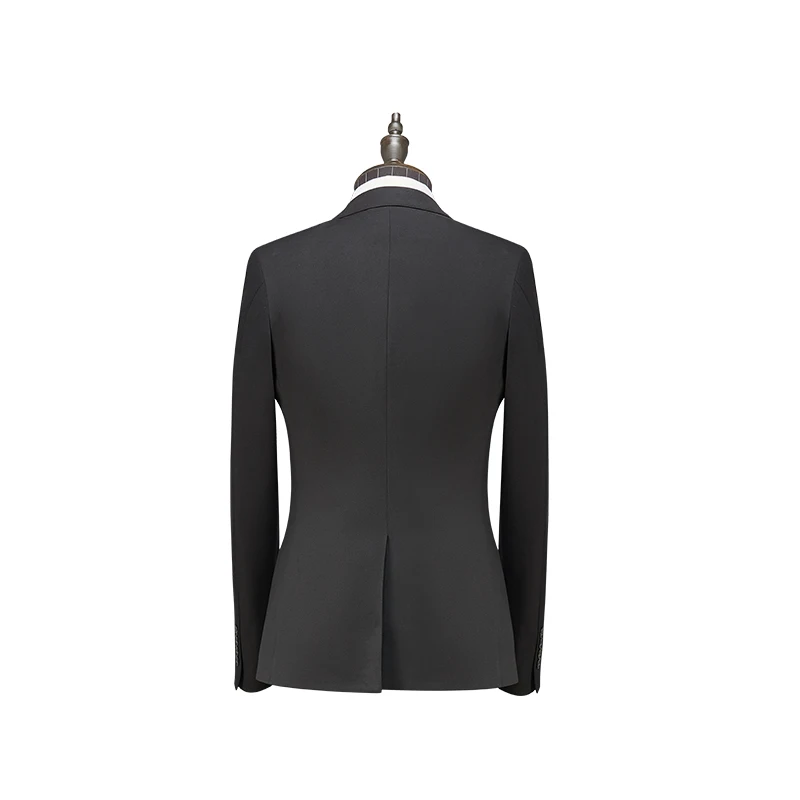 Black Men's Business Suit Single Breasted Breathable Wrinkle Resistant Wool Polyester Fiber Half Canvas for Formal Office Use